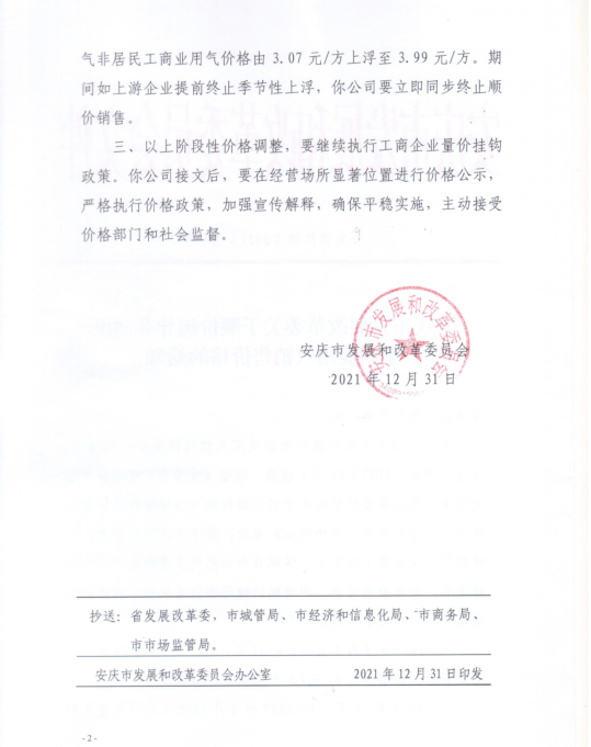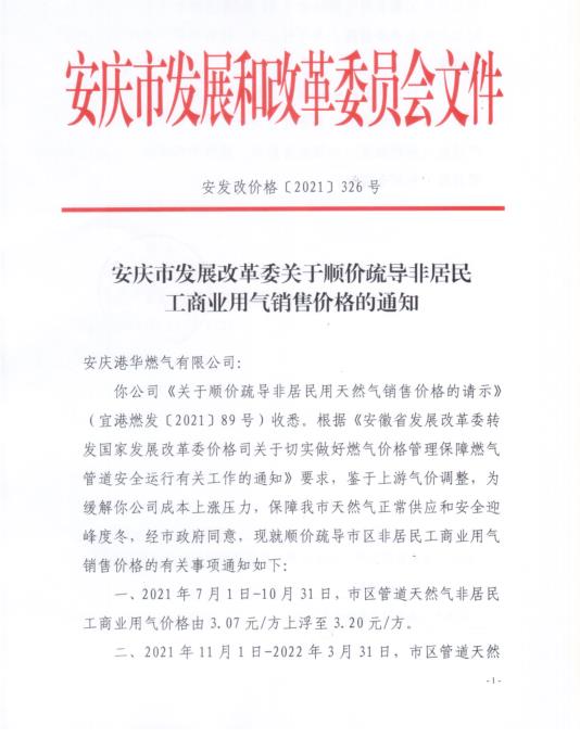 安慶市發(fā)展改革委關(guān)于順價(jià)疏導(dǎo)冬季非居民工商業(yè)用氣價(jià)格的通知(2021)
