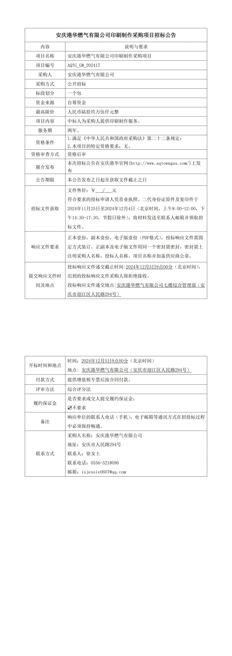 安慶港華燃?xì)庥邢薰居∷⒅谱鞑少忢椖空袠?biāo)公告