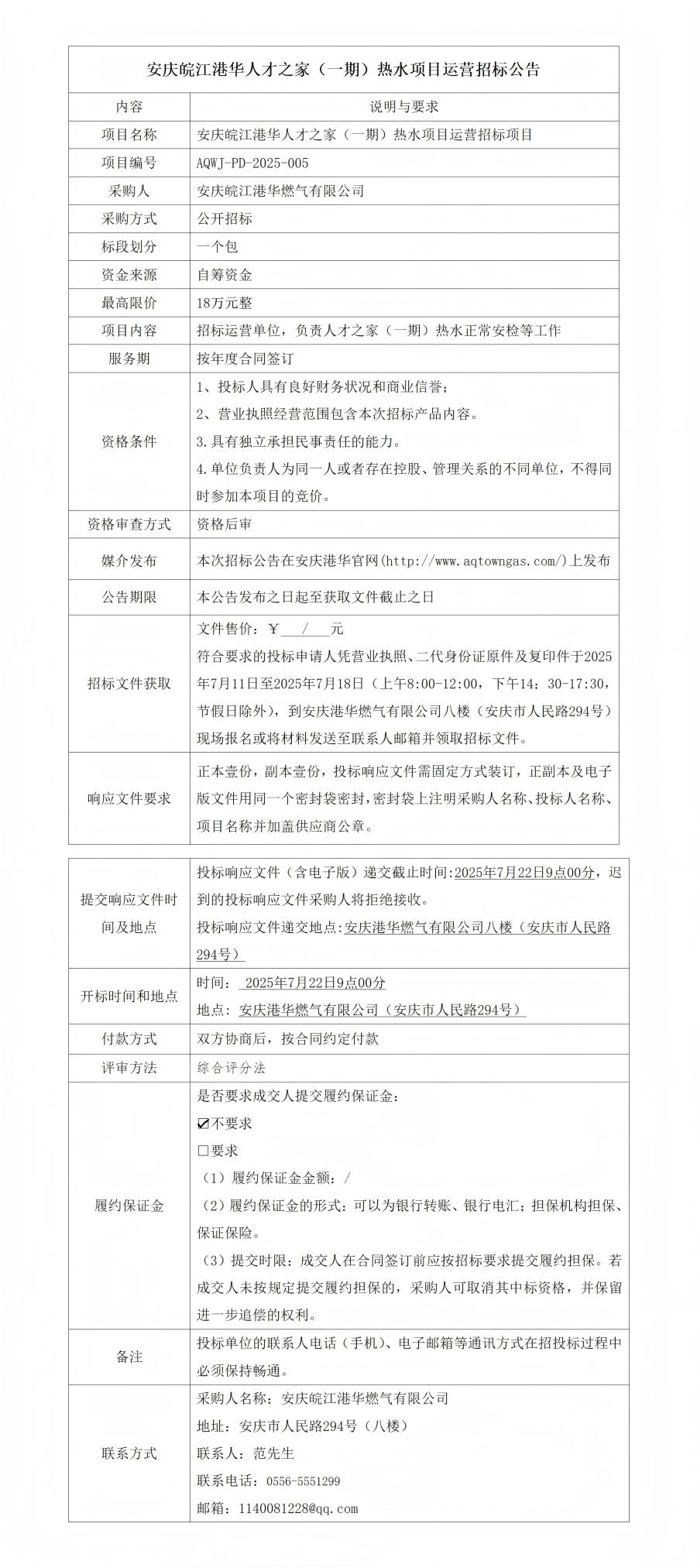 安慶皖江港華人才之家(一期)熱水項(xiàng)目運(yùn)營(yíng)招標(biāo)公告