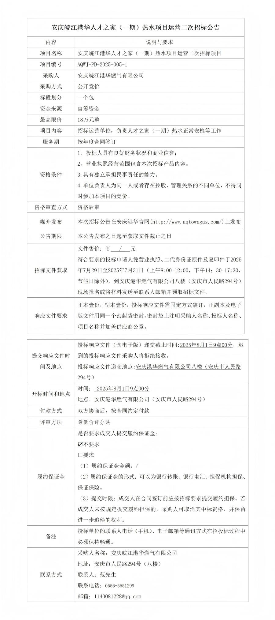 安慶皖江港華人才之家(一期)熱水項(xiàng)目運(yùn)營二次招標(biāo)公告