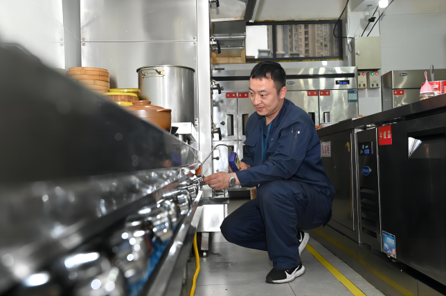 在這次專項安全檢查期間,安慶港華工商安檢員走進全市大中小學、幼兒園等教育機構學校食堂,認真排查食堂表前閥、表后閥及燃氣表,每處連接口是否銹蝕,并用檢測儀器測試各連接口處是否存在漏氣現象。對灶臺內部、灶前閥是否漏氣進行檢測。